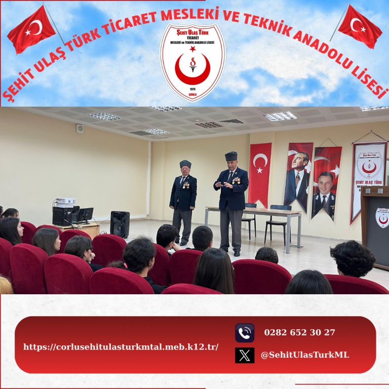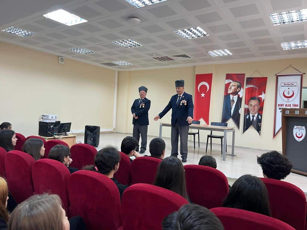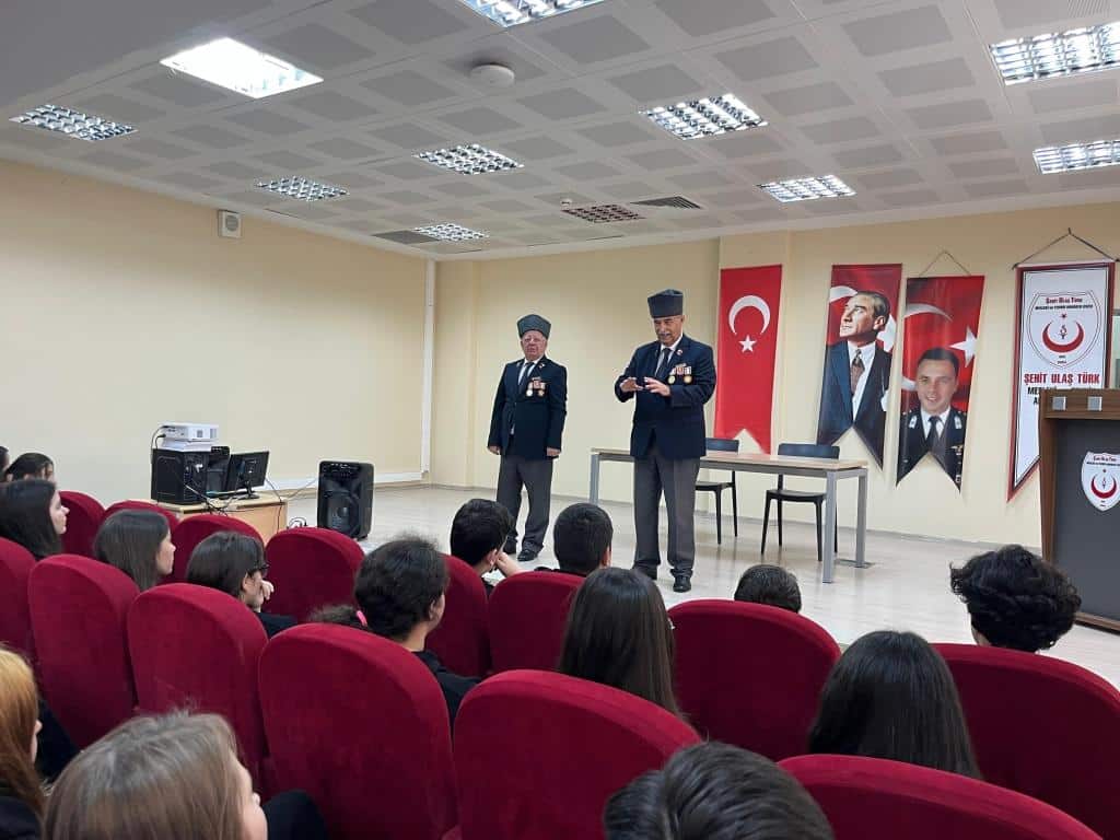 19 Eylül Gaziler Günü kapsamında okulumuzda anlamlı bir etkinlik gerçekleştirildi. Kıbrıs gazilerimiz Recep KAYACI ve İbrahim MAKARNACI ’nın katılımıyla düzenlenen söyleşide, öğrencilerimiz tarihimizin kahramanlarını yakından tanıma fırsatı buldu.Gazilerimiz, Kıbrıs Barış Harekâtı sırasında yaşadıkları hatıraları, vatan sevgisini ve fedakârlıklarını öğrencilerimizle paylaştılar. Samimi bir ortamda geçen söyleşide öğrenciler, gazilerimize sorular yönelterek hem tarihi bilgilerini pekiştirdi hem de milli birlik ve beraberlik bilincini güçlendirdi.Okulumuzda düzenlenen bu anlamlı etkinlik, geleceğimizin teminatı olan gençlere vatan sevgisini ve kahramanlık ruhunu aktarmak açısından büyük önem taşıdı.
